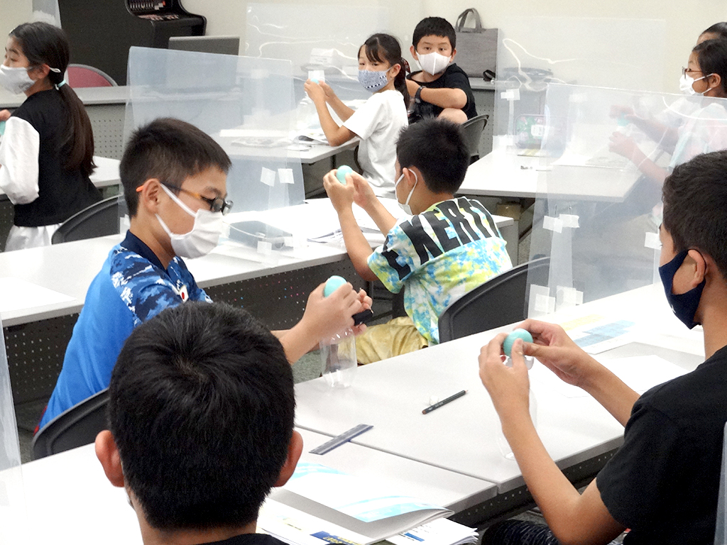 などについて講義を受け、講義の中で雲や竜巻のおこる実験をおこない自然現象の変化や温暖化の影響等に驚き真剣に聞き入っていた。講座終了後、質問の時間では、特に、2100年頃は温暖化への対策を怠ると気温が42度を超える日々が続くことについて関心が高かったようです。