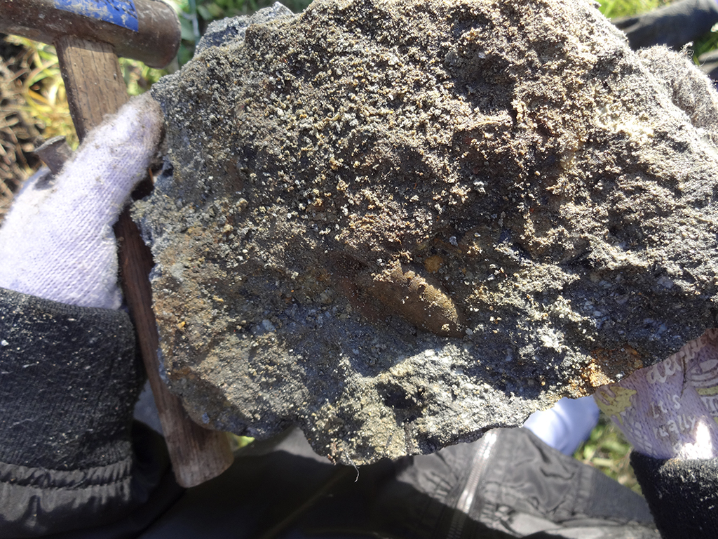 など、狭い小川の川床をタガネとハンマーで岩を砕き、貝の化石を掘り出した喜びと、なぜ岩の中に何万年前もの貝があるのだろうと驚いていた。