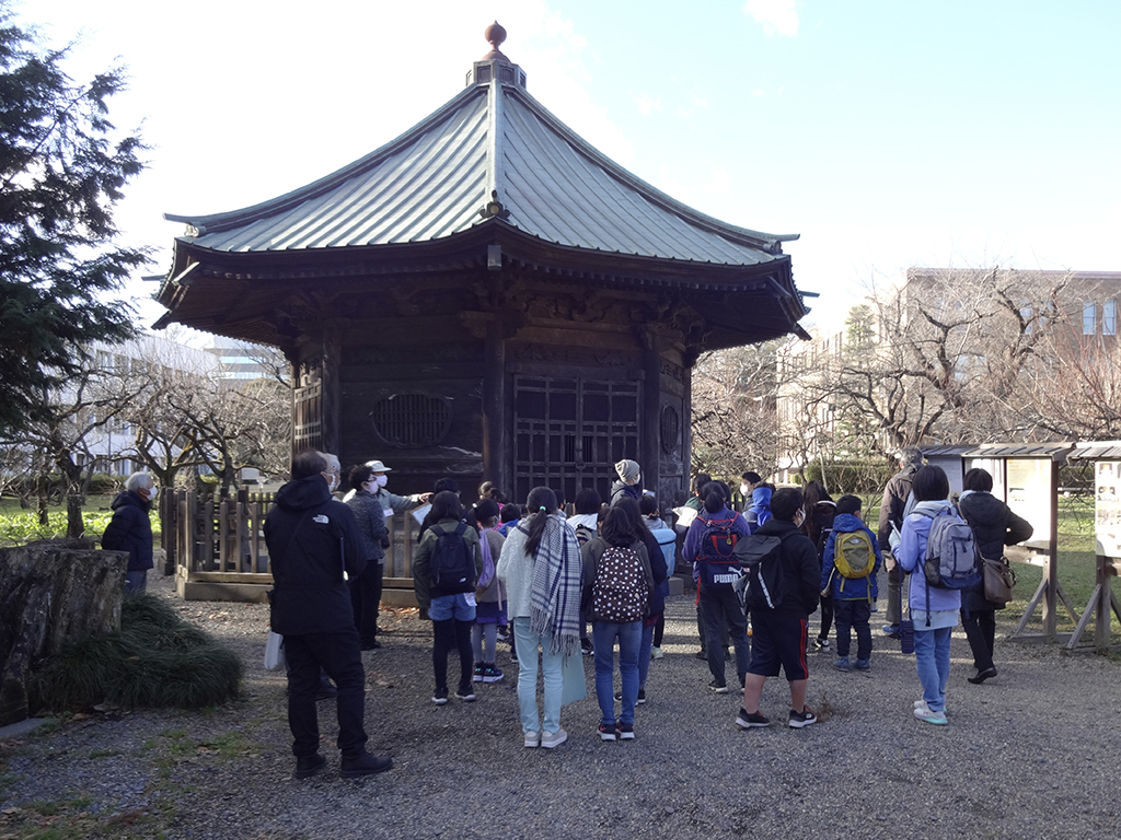 第5回講座は、12月18日(土)に仲田昭一講師による「水戸藩の学校「弘道館」へ行ってみよう!」でした。保護者の送迎で水戸藩校弘道館に集合し、見学の前に講師から弘道館について